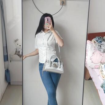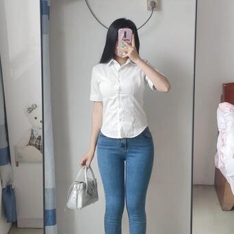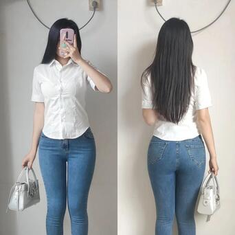 👗微胖也能穿出高级感!修身白色衬衫,简约而不失干练,轻松驾驭各种场合。👔 搭配紧身款九分牛仔铅笔裤,完美勾勒出腿部线条,即便是梨形身材的宝贝也能自信驾驭!👖